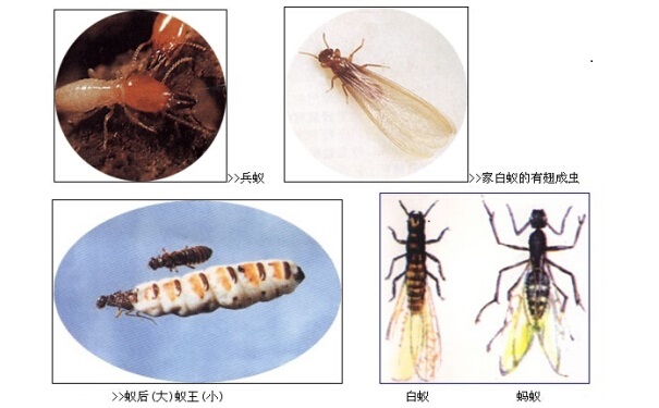 白蟻的種類有很多種,中國已知有白蟻4科、47屬、480多種,國內(nèi)28個?。ㄊ?、自治區(qū))均有分布。其中危害較嚴重的有土木棲的鼻白蟻科乳白蟻屬的家白蟻(臺灣乳白蟻)、散白蟻、土棲的黑翅大白蟻、堆砂白蟻、黃胸散白蟻等,對房屋建筑危害最嚴重的是家白蟻。
